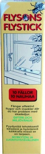 Flyson ikkuna-ansa pyydystää tehokkaasti kärpäsiä ja hyönteisiä juuri sieltä missä niitä yleensä on. Asennetaan ikkunan alle. Ei tahraa ikkunaa. Pakkaus sisältää 10 nauhaa.