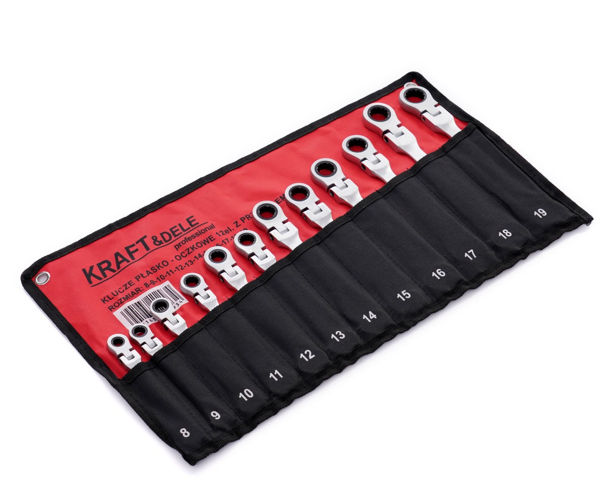 Laadukas räikkälenkkisarja 8-19mm 12-os. Sisältää koot 8, 9, 10, 11, 12, 13, 14, 15, 16, 17, 18, 19mm