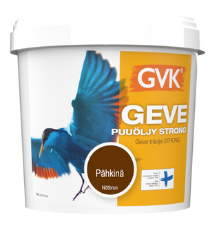 GVK Kotimaiset laadukkaat maalit! Geve Puuöljy Strong on vesiohenteinen, öljypohjainen puuöljyemulsio. Strong ehkäisee puun halkeilua sekä antaa puulle vettä ja likaa hylkivän, kuultavan ja kauniin pinnan.